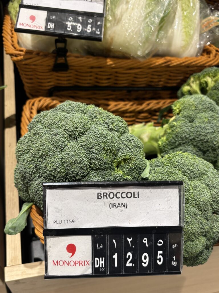 イラン産のブロッコリーは1kgで12.95ディルハム(約557円)でした。