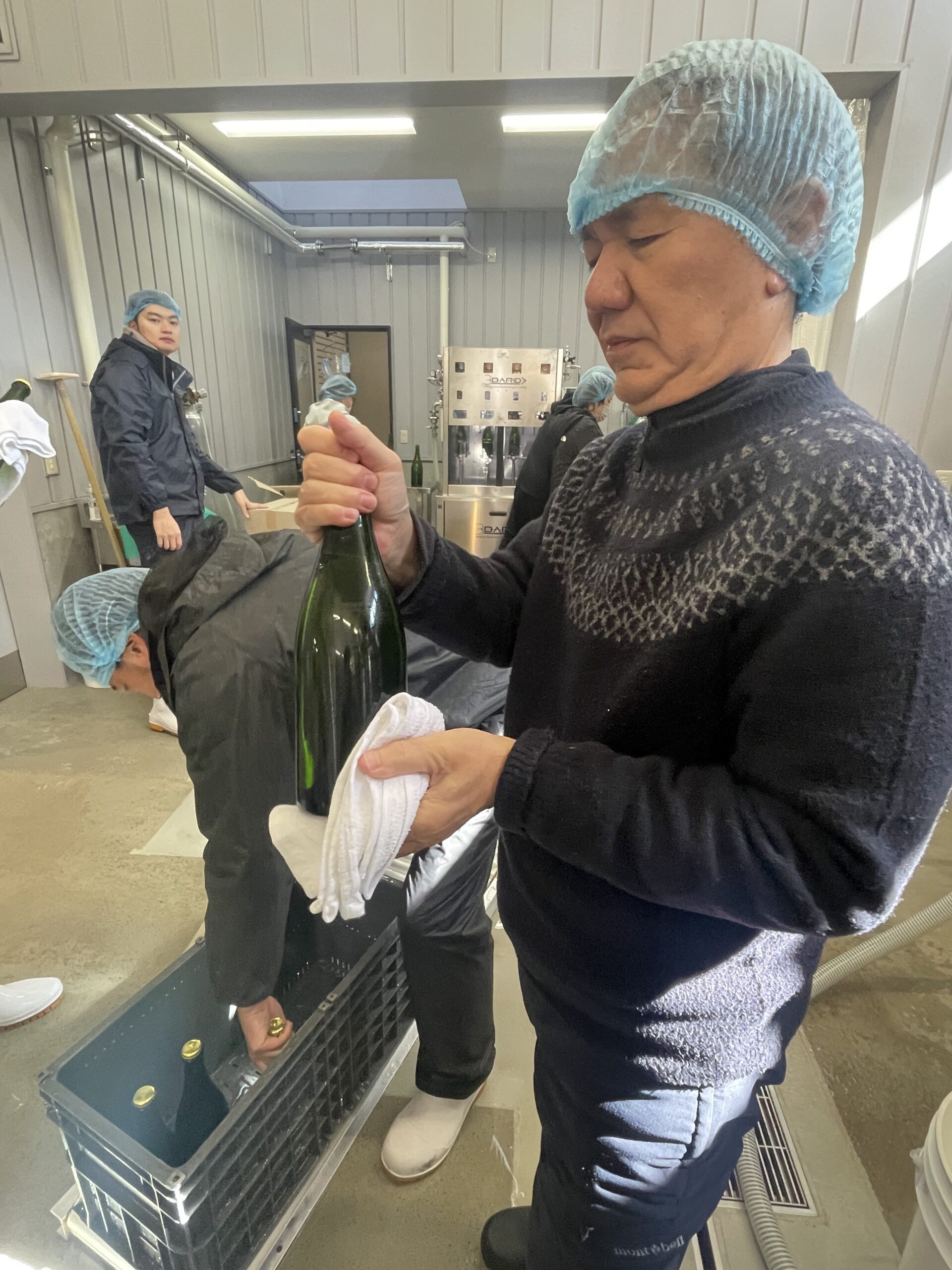 瓶詰め後に試飲を行いましたが、とてもきれいでフレッシュ、果実味あふれるスパークリングワインに仕上がっています。完成をどうぞお楽しみに。